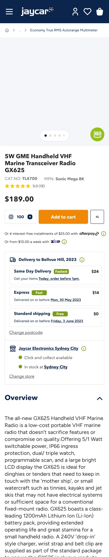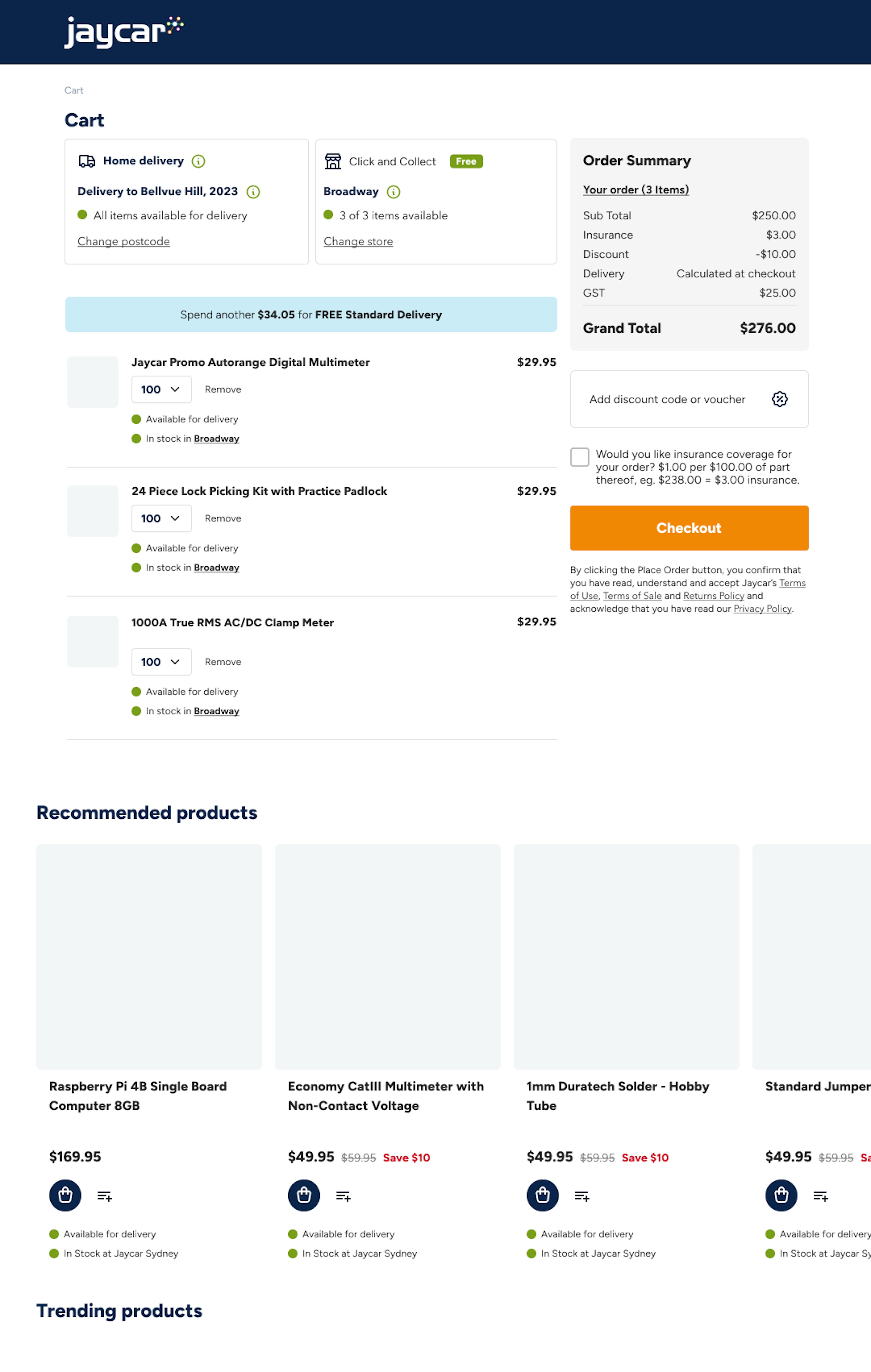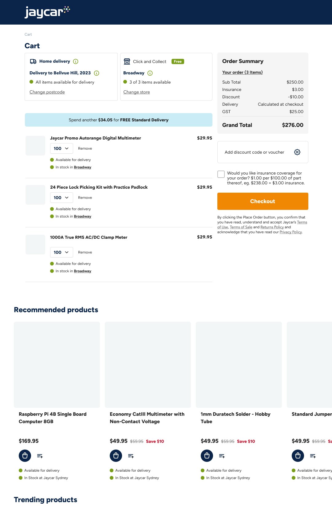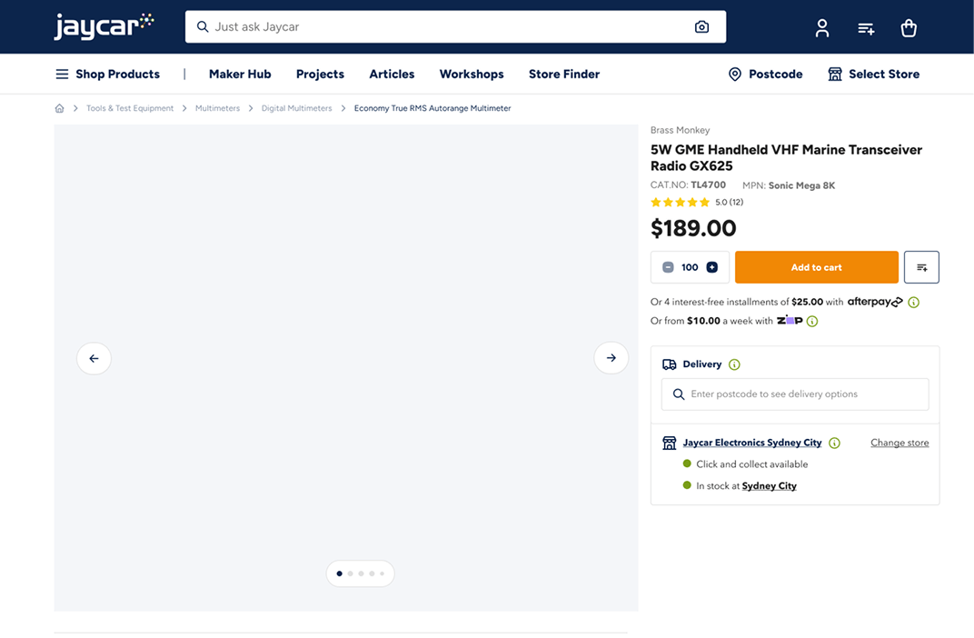 Jaycar Electronics, a leading Australian electronics retailer, had recently relaunched its e-commerce website. Following the update, the product detail page (PDP) and cart saw a noticeable decline in performance, including lower conversion rates, reduced basket sizes, and increased customer frustration. Jaycar brought me in to conduct a focused UX audit of these areas, identify the causes of the drop-off, and provide actionable recommendations to restore and improve conversion.